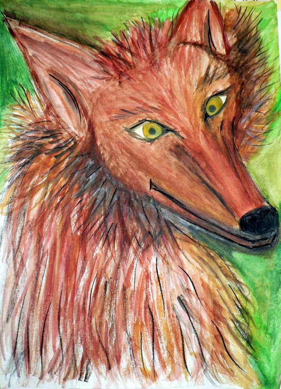 Quin pel.latge i quins ulls tant potents que te aquesta lloba. Podries mirar que significat te el color verd? Gracies per compartir el teu dibuix i una estimadeta