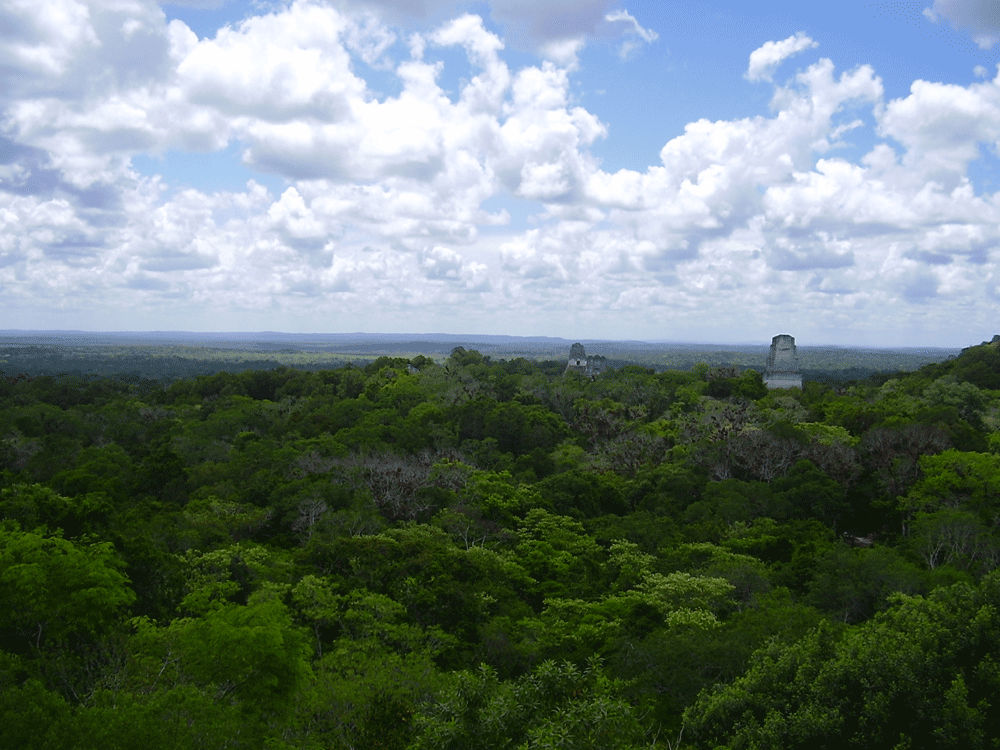 “Y esto ocurre en un país de paisajes dormidos. Luz de encantamiento y esplendor. País verde. País de los árboles verdes. Valles, colinas, selvas, volcanes, lagos verdes, verdes, bajo el cielo azul sin una mancha. Y todas la combinaciones de los colores florales, frutales, pajareros en el enjambre de las anilinas……………. Hay relieves, pirámides, templos en las ciudades apagadas. Detenerse, imposible. El vértigo sigue al instante en que sobrecogidos, extasiados, contemplamos la ciudad de Tikal. Arroyos de ruido húmedo, voces, entrechocarse de troncos, aletear de aves, que van a dar al mar inmenso del silencio. Todo palpita, vive, se desangra en verdor sobre la inmensa lámina endurecida del Petén…”