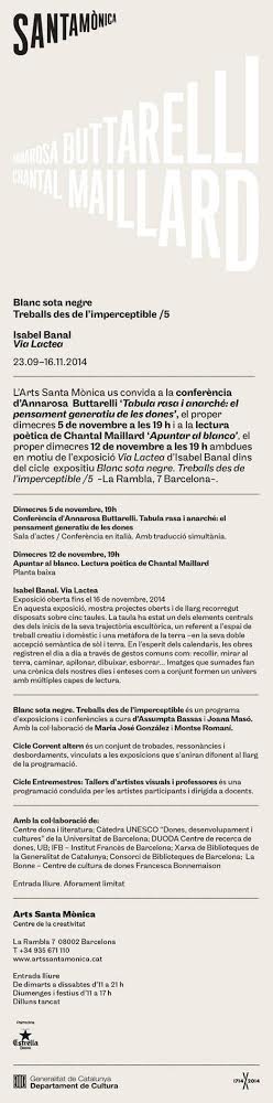 Lectura poética de Chantal Maillard Publicat el 3 Novembre 201418 Març 2016 per muriel APUNTAR AL BLANCO. Lectura poética de Chantal Maillard El miércoles 12 de noviembre a las 19:00 en Arts Santa Mónica. Planta baixa Compartir: Share on X (S'obre en una nova finestra) X Email a link to a friend (S'obre en una nova finestra) Correu electrònic Imprimeix (S'obre en una nova finestra) Imprimeix Comparteix al Facebook (S'obre en una nova finestra) Facebook Share on Pinterest (S'obre en una nova finestra) Pinterest M'agrada S'està carregant... Relacionats